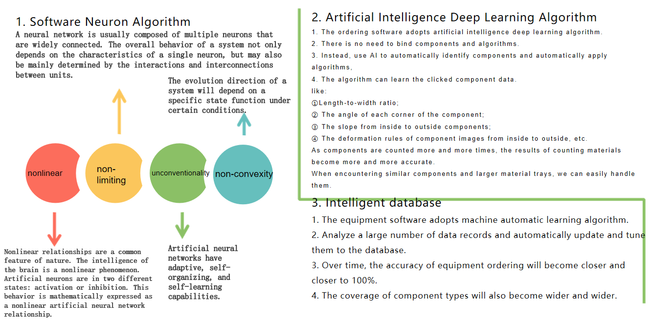Suitable for various types of chip components, SMD devices; high product compatibility, can quickly and accurately detect materials such as 7-15-inch trays (can be upgraded to 17-inch YJedec Tray/IC moisture-sensitive packages; material label error-proofing mechanism, Material tray induction recognition, real-time docking with the printer, pick up any tray of materials and print the tray material information.